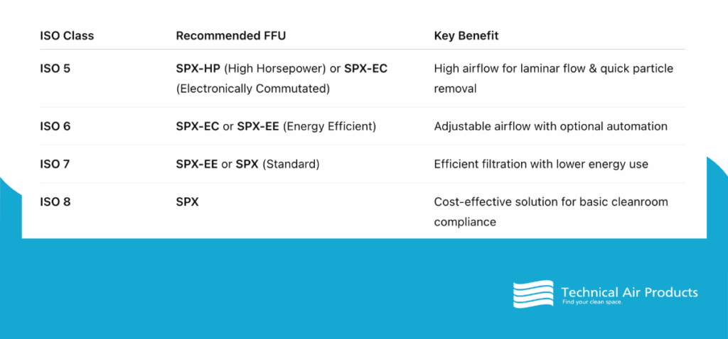 Here’s a selection guide for Technical Air Products’ FFUs:
